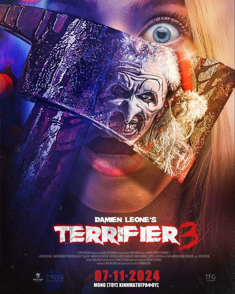 To λιγότερο που μπορείς να πεις για το «Terrifier 3» είναι ότι πρόκειται για ένα κυριολεκτικά ανυπόφορο σπλάτερ το οποίο απευθύνεται αποκλειστικά στους φαν του είδους και ειδικότερα σε όσους ευχαριστιούνται με το να γελούν βλέποντας μυαλά και εντόσθια να χύνονται στην οθόνη μετά από απανωτά χτυπήματα τσεκουριών – και λίγα λέμε. Δράστης ένας κλόουν που δεν μιλάει ποτέ. Προφανώς οι δημιουργοί της ταινίας θέλησε να ακολουθήσουν το μοντέλο ανάλογου τύπου ταινιών με serial killers όπως οι «Halloween», «Scream» και «Saw», με μόνο εύρημα την ακόμα πιο ακραία βία, τα ακόμα πιο βαθιά τσεκουρώματα, το ακόμα περισσότερο χυμένο αίμα, την ακόμα περισσότερη δουλειά στο τμήμα των ειδικών οπτικών εφέ (που έχει κάνει μακράν την περισσότερη δουλειά στην ταινία). Και η αλήθεια είναι ότι τα κατάφεραν διότι το «Terrifier 3» αποτελεί το τρίτο μέρος ενός franchise τρόμου που άρχισε το 2016 από τον ίδιο σκηνοθέτη. Αυτό σημαίνει ότι η ταινία γυρίστηκε επειδή οι προηγούμενες δύο είχαν επιτυχία και δυστυχώς, από μόνο του δηλώνει πολλά.