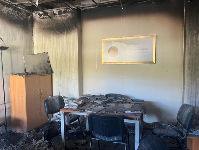 Τρία γραφεία καταστράφηκαν ολοσχερώς, μεταξύ των οποίων αυτά του αντιπρύτανη και του νομικού συμβούλου.