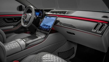 Όπως φαντάζεται κανείς την ίδια γκρι λογική ακολουθεί και το εσωτερικό το οποίο επίσης δεν στερείται ανθρακονημάτων κατά τα πρότυπα της Brabus που έχει αξιοποιήσει το συγκεκριμένο υλικό σε ταμπλό, κεντρική κονσόλα και τιμόνι. Από ανθρακονήματα έχουν κατασκευαστεί επίσης τα paddles αλλαγής σχέσεων αλλά και τα πεντάλ. Τα καθίσματα επενδύονται με διάτρητο δέρμα ακριβώς στην ίδια απόχρωση με το εξωτερικό.