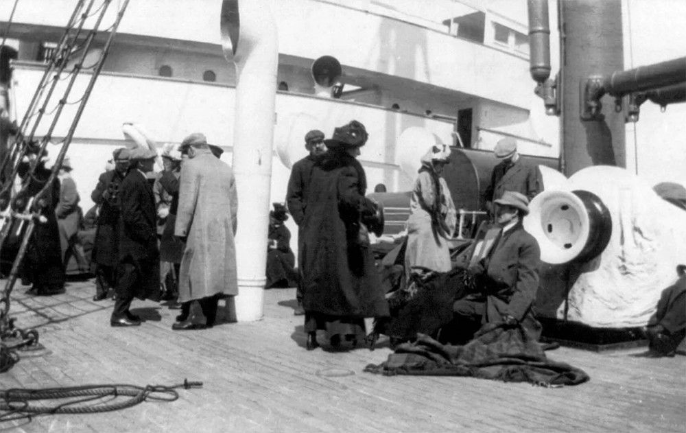 Επιζώντες από το ναυάγιο του Τιτανικού πάνω στο Καρπάθια, εν πλω για τη Νέα Υόρκη, Απρίλιος 1912. Η φωτογραφία είναι από τη συλλογή της Βιβλιοθήκης του Κογκρέσου στην Ουάσινγκτον.