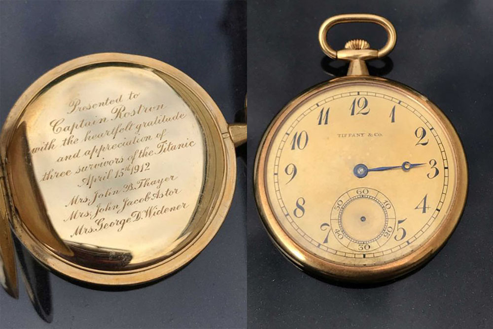 Το 18 καρατίων ρολόι της Tiffany & Co. ήταν ένα δώρο από τρεις επιζήσασες του ναυαγίου του Τιτανικού προς τον σωτήρα τους, Άρθουρ Χένρι Ρόστρον, καπετάνιο του επιβατηγού πλοίου Καρπάθια, ο οποίος εξέτρεψε την πορεία του προκειμένου να προστρέξει στο σημείο της τραγωδίας, όταν ο Τιτανικός χτύπησε σε παγόβουνο και βυθίστηκε στον βόρειο Ατλαντικό στο παρθενικό του ταξίδι το 1912. Ο οίκος δημοπρασιών Henry Aldridge and Son, πούλησε το ρολόι σε ιδιώτη συλλέκτη από τις Ηνωμένες Πολιτείες, το Σάββατο 16 Νοεμβρίου για 1,56 εκατομμύρια βρετανικές λίρες και κατά δήλωσή τους πρόκειται για το πιο ακριβοπληρωμένο αναμνηστικό από το ναυάγιο του Τιτανικού.