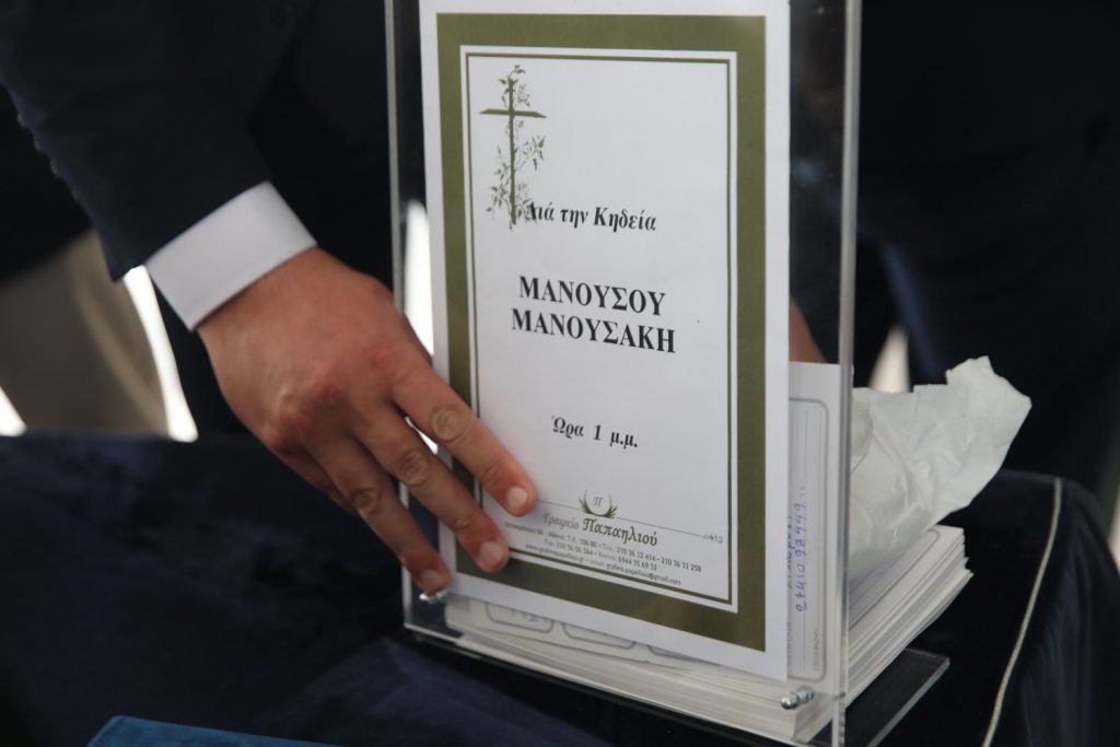 Πλήθος κόσμου περίμενε προκειμένου να μπει και να αποχαιρετήσει το μεγάλο σκηνοθέτη μέσα στην αίθουσα τελετών και πριν ξεκινήσει η εξόδιος ακολουθία.