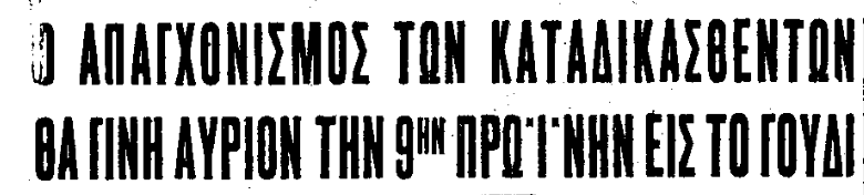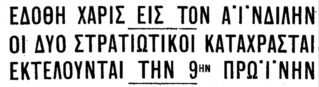 »Η διεύθυνσις των φυλακών ειδοποιήθη από της χθες, όπως μη αποστείλη σήμερον εις τον τόπον της εκτελέσεως τον Αϊδινλήν».
