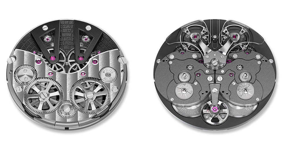 Μοναδικές και οι πολλαπλές χειροποίητες διακοσμήσεις όλων ανεξαιρέτως των εξαρτημάτων. Σήμα κατατεθέν και προτεραιότητα του οίκου, αν φανταστεί κάποιος ότι οι διακοσμητές υπερτερούν 3 προς 1 έναντι των συναρμολογητών ωρολογοποιών! Οπτική απόλαυση η αντίστροφη περιστροφική κίνηση των αντίστοιχα αιωρούμενων μπαλανσιέ στηριγμένων σε μια κοινή συμπλεκόμενη γέφυρα-έλασμα. Η αντήχηση των ταλαντώσεών τους (resonance) είναι αυτή που τους κρατά συντονισμένους.