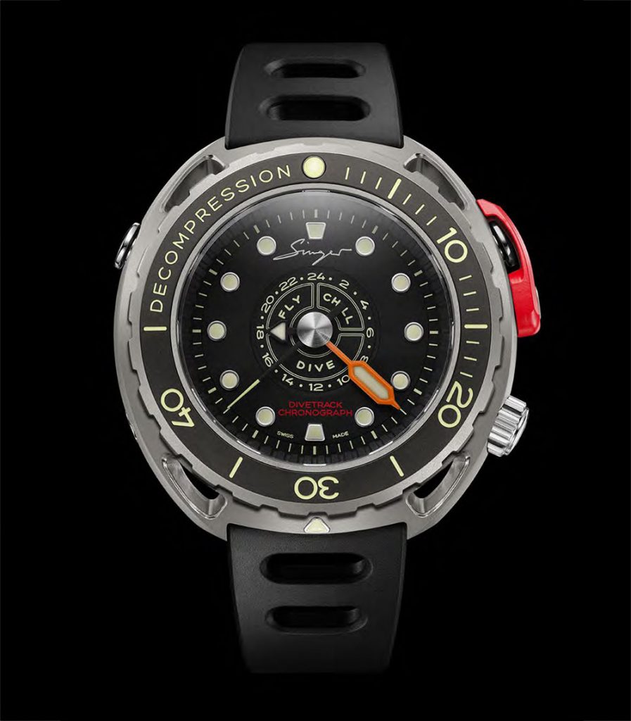 Μετά το αξιοσημείωτο Track1 Central Chronograph του 2017 και το Flytrack του 2020, με το Singer Divetrack ο Marco Borraccino παρουσιάζει τη σύλληψη και την εκτέλεση του απόλυτου καταδυτικού αναλογικού και μηχανικού ρολογιού. Και, πράγματι, είναι εντυπωσιακό και σχεδιαστικά απέριττο ταυτόχρονα λαμβάνοντας υπόψη τις λειτουργίες και τις ενδείξεις, μαζί με τις πολύ χρηστικές πληροφορίες που σου προσφέρει. Όλα με πολύ έξυπνο, σχεδιαστικά ευανάγνωστο και, κυρίως, εύχρηστο τρόπο που, όντως, το καθιστά πρωτιά και μοναδικό στον κόσμο των επαγγελματικών μηχανικών καταδυτικών ρολογιών.
