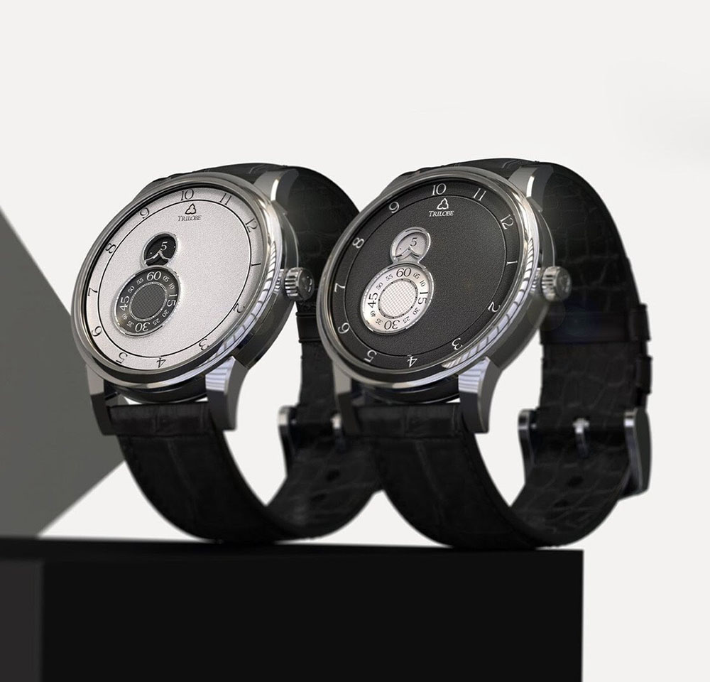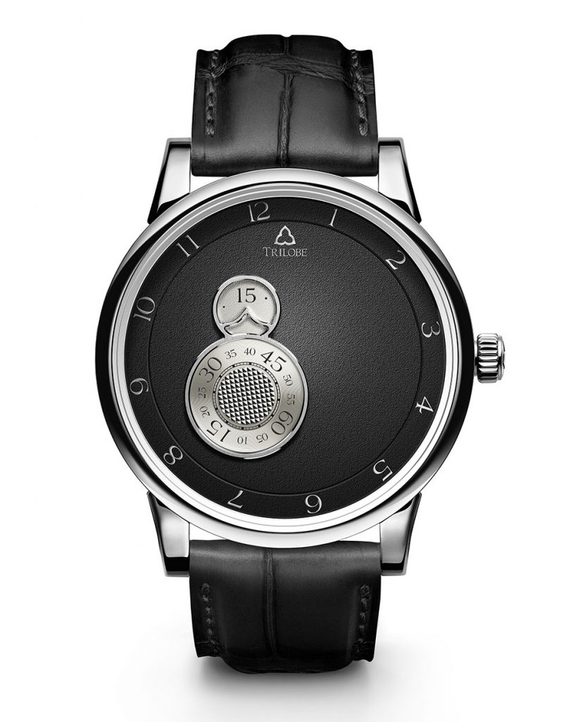 Έχοντας μόλις μιλήσει για ένα πολύ κομψό και συνάμα συναρπαστικό και οπτικά πολυδιάστατο ρολόι, θα κλείσω με ένα επίσης πολύ κομψό, αλλά σχεδιαστικά μινιμαλιστικό, καθαρό και απέριττο, ανατρεπτικό, χωρίς δείκτες, με μια πολύ ενδιαφέρουσα και πρωτότυπη εναλλακτική ένδειξη της ώρας, το Nuit Fantastique από την Trilobe. Το ίδιο το όνομα και το λογότυπο της ανεξάρτητης ωρολογοποιίας Trilobe (τρίλοβο, με τρεις «αψίδες») υποδηλώνουν τη φιλοσοφία της για την ανάγνωση της ώρας μέσα από τρεις κυκλικές περιφερειακές ενδείξεις και για τις τέσσερις σειρές ρολογιών της, αλλά με διαφορετικό τρόπο για την καθεμία. Οι δύο νέες εκδόσεις, η ασπρόμαυρη Lumière και η μαυρόασπρη Ombre της σειράς Nuit Fantastique, είναι αυτές που παρουσιάστηκαν τον περασμένο Σεπτέμβριο.