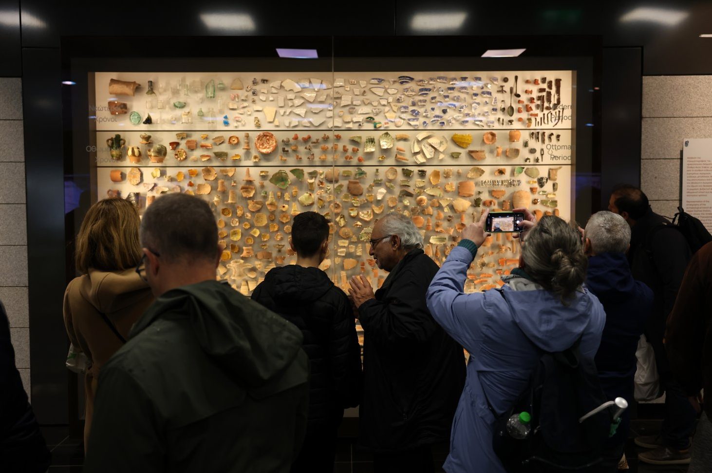 «Είναι πραγματικά εντυπωσιακό. Σαν να βρίσκεσαι σε αρχαιολογικό χώρο. Σαν να μπαίνεις σε άλλη εποχή. Δεν πειράζει, άξιζε η αναμονή τόσων χρόνων» λέει ο Γιώργος Πολυχρονίδης, ο οποίος βρίσκεται ανάμεσα σε δεκάδες άτομα που παρακολουθούν στην οθόνη του σταθμού ένα βίντεο με τα αρχαιολογικά ευρήματα που ανακαλύφθηκαν.