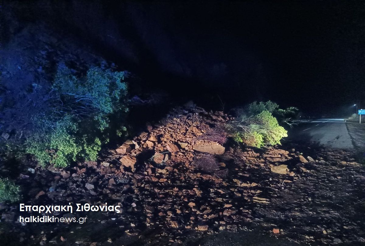Δρόμοι μετατράπηκαν σε ποτάμια, σπίτια και καταστήματα πλημμύρισαν, λάσπες και φερτά υλικά γέμισαν τους οικισμούς και μία γέφυρα κατέρρετσε. Η επαρχιακή οδός Σιθωνίας σε πολλά σημεία ήταν απροσπέλαστη, καθώς έγιναν μεγάλες κατολισθήσεις και έπεσαν δέντρα στο οδόστρωμα.