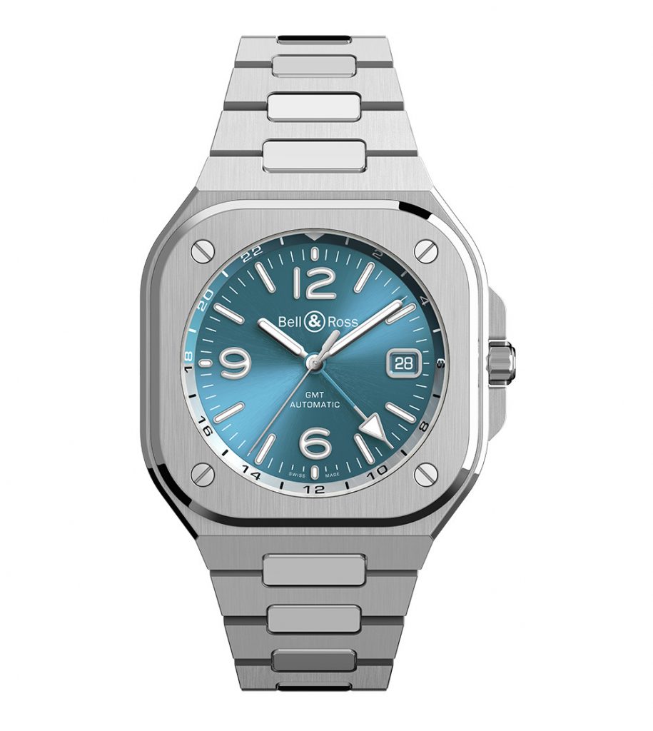 Εμείς επιλέξαμε ένα μοντέλο BR-05 με ώρα GMT. Είναι η πιο urban σειρά της Bell & Ross με κάσα και μπρασελέ από ατσάλι και καντράν στο γαλάζιο του ουρανού. Τιμή: €5.700.