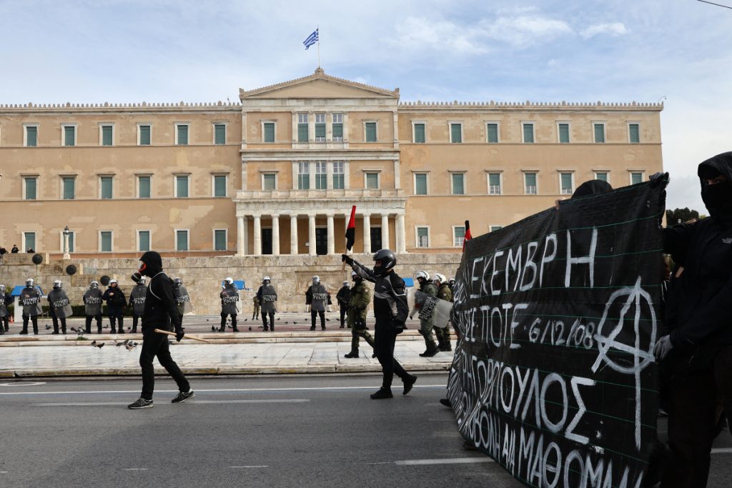 Ισχυρά μέτρα ασφαλείας στη Βουλή για τη μαθητική πορεία για την επέτειο της δολοφονίας του Αλέξη Γρηγορόπουλου.