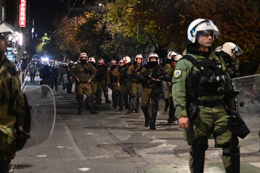 Στην ευρύτερη περιοχή των Εξαρχείων, όπου, αφού ολοκληρώθηκαν οι πορείες, σημειώνονται επεισόδια, βρίσκονται επί ποδός 5.000 αστυνομικοί, οι οποίοι απαντούν με χημικά και κρότου λάμψης στις μολότοφ των αντιεξουσιαστών, οι οποίοι με οδοφράγματα προσπαθούν να εμποδίσουν την πρόσβασή τους στο σημείο όπου έπεσε νεκρός ο 15χρονος μαθητής, το βράδυ της 6ης Δεκεμβρίου του 2008, από το όπλο του ειδικού φρουρού Επαμεινώνδα Κορκονέα, στη συμβολή των οδών Μεσολογγίου και Τζαβέλλα, προκειμένου να τελέσουν την καθειερωμένη επιμνημόσυνη δέηση.