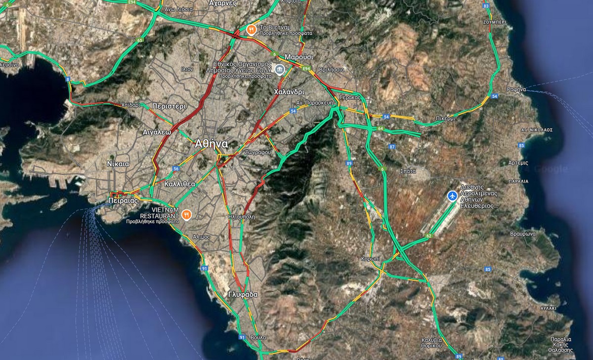 Μεγάλα προβλήματα υπάρχουν στον Κηφισό, την Κηφισίας, την Μεσογείων, τον περιφερειακό Υμηττού, την Βάρης – Κορωπίου, αλλά και στο κέντρο της Αθήνας.