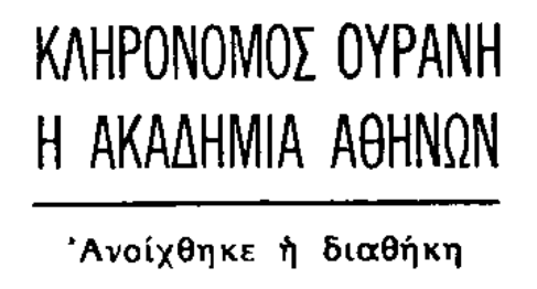 «Ένα νέο έργο που πολύ πιθνανόν να αποδειχθή ως εξαιρετικής σημασίας για τα ελληνικά Γράμματα και την ελληνική πνευματική ζωή γενικότερα, ανήγγειλε χθες στην Ακαδημία Αθηνών ο κ. Αθανασιάδης – Νόβας προς τους εκπροσώπους του ελληνικού Τύπου.