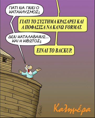 Ο διάσημος σκιτσογράφος Αρκάς, στο σημερινό του σκίτσο φιλοξενεί τον Νώε και την κιβωτό του σε έναν διάλογο που διεμήφθη μεταξύ εκείνου και του Θεού.