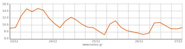 Από την άλλη πλευρά, το Accuweather.com, προβλέπει ότι η θερμοκρασία την ημέρα των Χριστουγέννων να κυμαίνεται σε υψηλότερα επίπεδα, κοντά στους 12 βαθμούς Κελσίου.