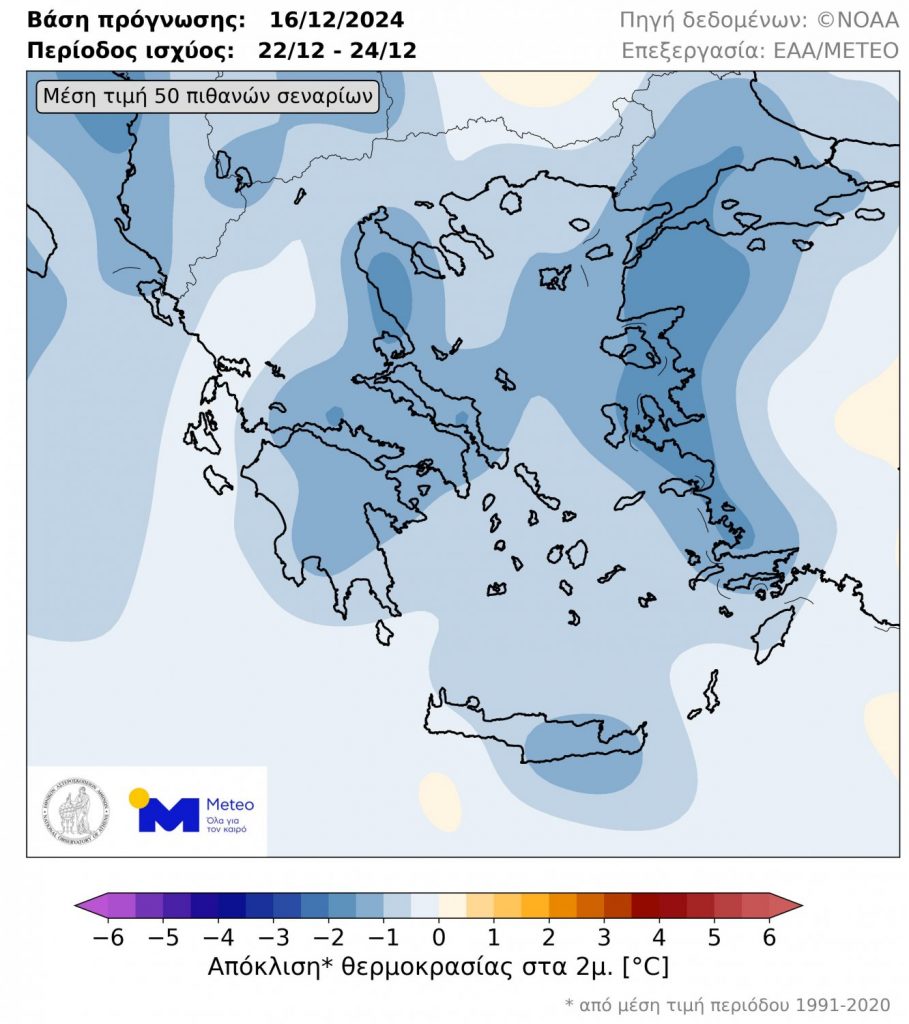 Με ιδιαίτερο κρύο αναμένεται να κινηθούν οι ημέρες των εορτών, όπως αναφέρουν οι ειδικοί. Μάλιστα, όπως παρουσιάζει σε γραφήματά του το meteo.gr/ Εθνικό Αστεροσκοπείο Αθηνών, η θερμοκρασία φαίνεται πως θα κινηθεί κοντά στους 0 βαθμούς Κελσίου και κάτω από αυτό.