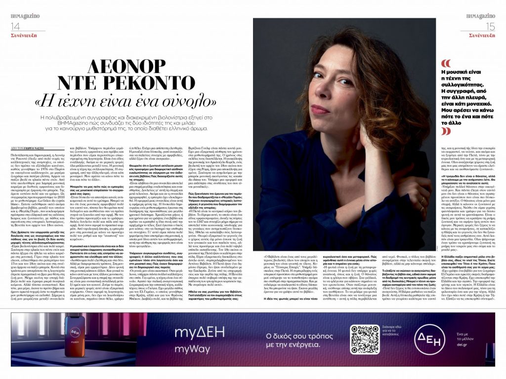 Ξεχωριστοί άνθρωποι μιλούν και σε αυτό το τεύχος του BHMAGAZINO. Ο ταλαντούχος Τάκης Ζαχαράτος και η Λεονόρ Ντε Ρεκόντο, η πολυβραβευμένη συγγραφέας και διακεκριμένη βιολονίστρια.