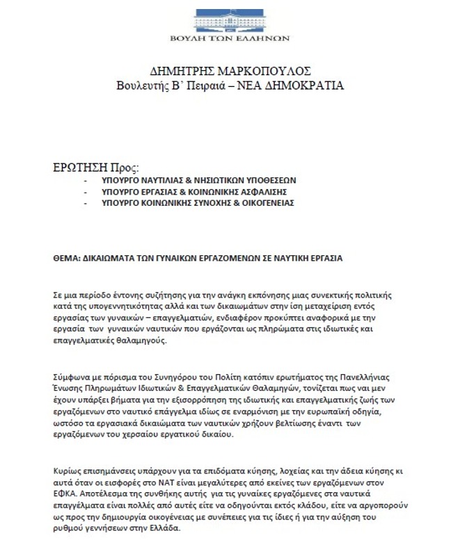 Παράλληλα, υπογραμμίζει πως έχουνε γίνει και κοινοβουλευτικές ερωτήσεις σχετικά με το συγκεκριμένο ζήτημα, όπως για παράδειγμα του βουλευτή Β’ Πειραιά, Δημήτρη Μαρκόπουλου.