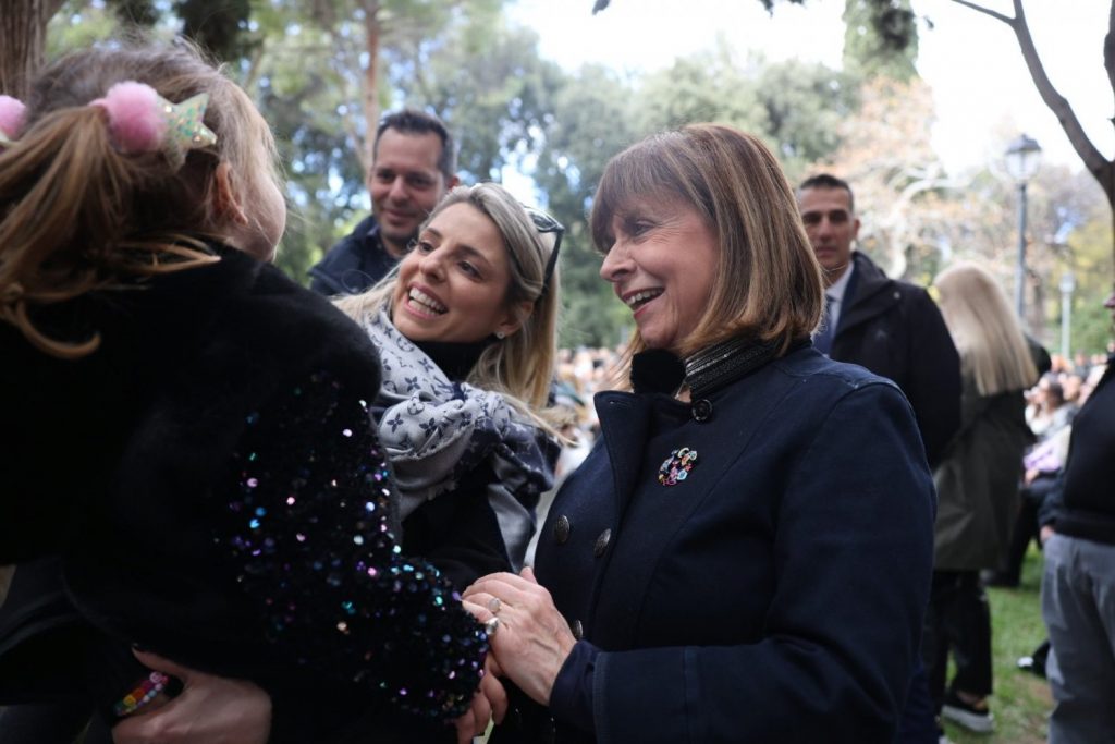 Καθ’ όλη την διάρκεια της εκδήλωση η κυρία Σακελλαροπούλου συνομιλούσε συνεχώς και αντάλλασσε ευχές με τους παριστάμενους μικρούς και μεγάλους για χαρούμενα Χριστούγεννα και μια καλή νέα χρονιά.