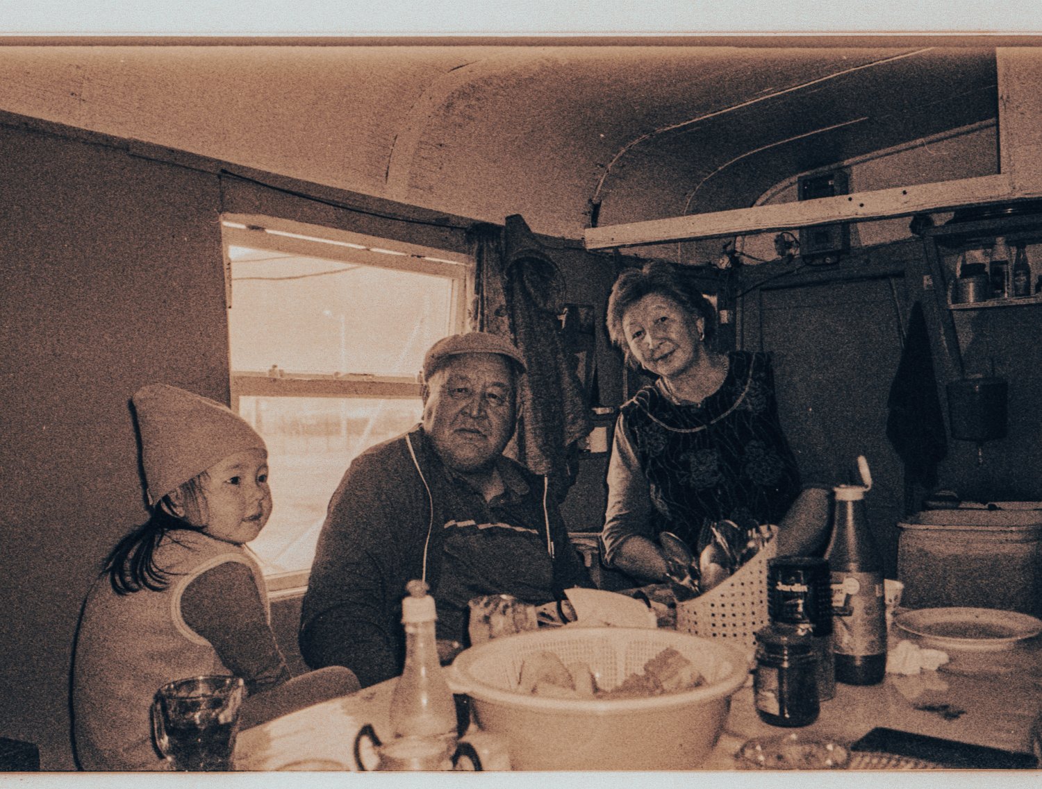 Μια άλλη νύχτα κοιμήθηκα σε ένα νομαδικό σπίτι που ανήκε σε μια βοσκοπούλα που ζούσε με τα 5 παιδιά της στη μέση του πουθενά. Τράβηξα ένα πορτρέτο για να θυμάμαι τα χρώματα μέσα σε αυτό το σπίτι που με υποδέχτηκε στα βουνά. Μου πρόσφεραν βότκα στις 9 το πρωί πριν ανέβω σε ένα βουνό. Γέλασα και είπα με σεβασμό «όχι ευχαριστώ».