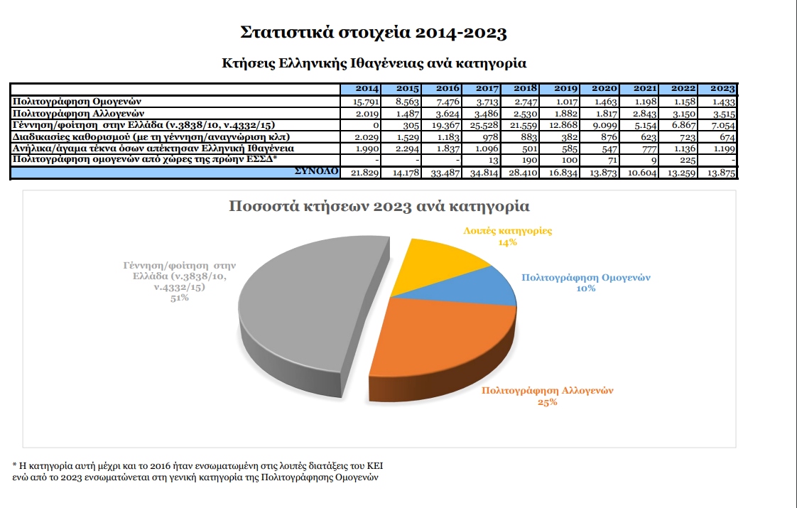 «Για την επιτάχυνση δε του ρυθμού εξέτασης των εκκρεμών αιτήσεων η Γενική Γραμματεία Ιθαγένειας έχει συγκροτήσει ειδική ομάδα Εργασίας επιδιώκοντας εντός του 2025 να ολοκληρωθεί η εξέταση παλαιών αιτήσεων», σημειώνει ο Δημήτριος Κάρναβος.