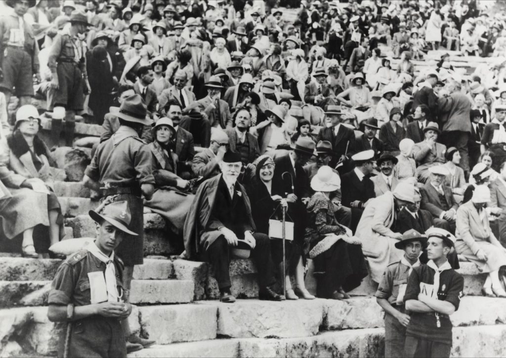 O Ελευθέριος Βενιζέλος με τη σύζυγο του Έλενα, ο δήμαρχος Αθηνών Σπύρος Μερκούρης με την εγγονή του Μελίνα και ο Αντώνης Μπενάκης ανάμεσα στον κόσμο στις Δελφικές Γιορτές του Άγγελου Σικελιανού και της Εύας Πάλμερ. Ευγενική παραχώρηση, National Archives, Washington DC