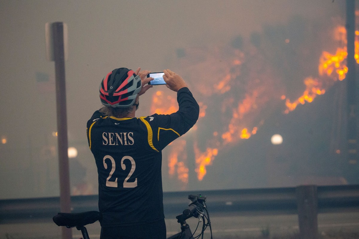Σε πλάνα που μετέδωσαν τηλεοπτικά δίκτυα, πυροσβεστικά αεροσκάφη έπαιρναν νερό από τη θάλασσα για να το ρίξουν στα σπίτια που καίγονταν. Μπουλντόζες απομάκρυναν τα εγκαταλελειμένα αυτοκίνητα από δρόμους προκειμένου ασθενοφόρα και άλλα οχήματα των υπηρεσιών εκτάκτων αναγκών να μπορούν να περνάνε.