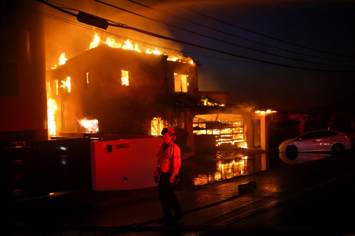 Ήταν μία από τις τουλάχιστον πέντε ξεχωριστές πυρκαγιές που έκαιγαν στην κομητεία του Λος Άντζελες το πρωί της Πέμπτης, καθώς οι ισχυροί άνεμοι εξαπλώνονταν στις φλόγες σε ένα ξερό έδαφος που δεν έχει δει βροχή εδώ και μήνες. Η δήμαρχος του Λος Άντζελες Κάρεν Μπας περιέγραψε την κατάσταση ως «τέλεια καταιγίδα» επικίνδυνων συνθηκών.