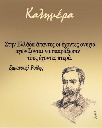 «Στην Ελλάδα άπαντες οι έχοντες ονύχια αγωνίζονται να σπαράξωσιν τους έχοντες πτερά». Εμμανουήλ Ροΐδης