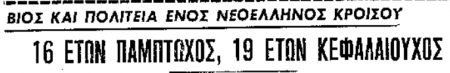 »Η ευφυΐα και το ρίσκο, το παιχνίδι με τον κίνδυνο και η γοητεία του «θρόνου» – είχε ήδη καταταγεί στην πρώτη θέση των πλουσιότερων ανθρώπων του κόσμου – έπλεξαν τον μύθο και τον τοποθέτησαν στις κορυφαίες θέσεις της ελληνικής οικονομικής ιστορίας, στο κεφάλαιο “διεθνή δραστηριότητα”…».