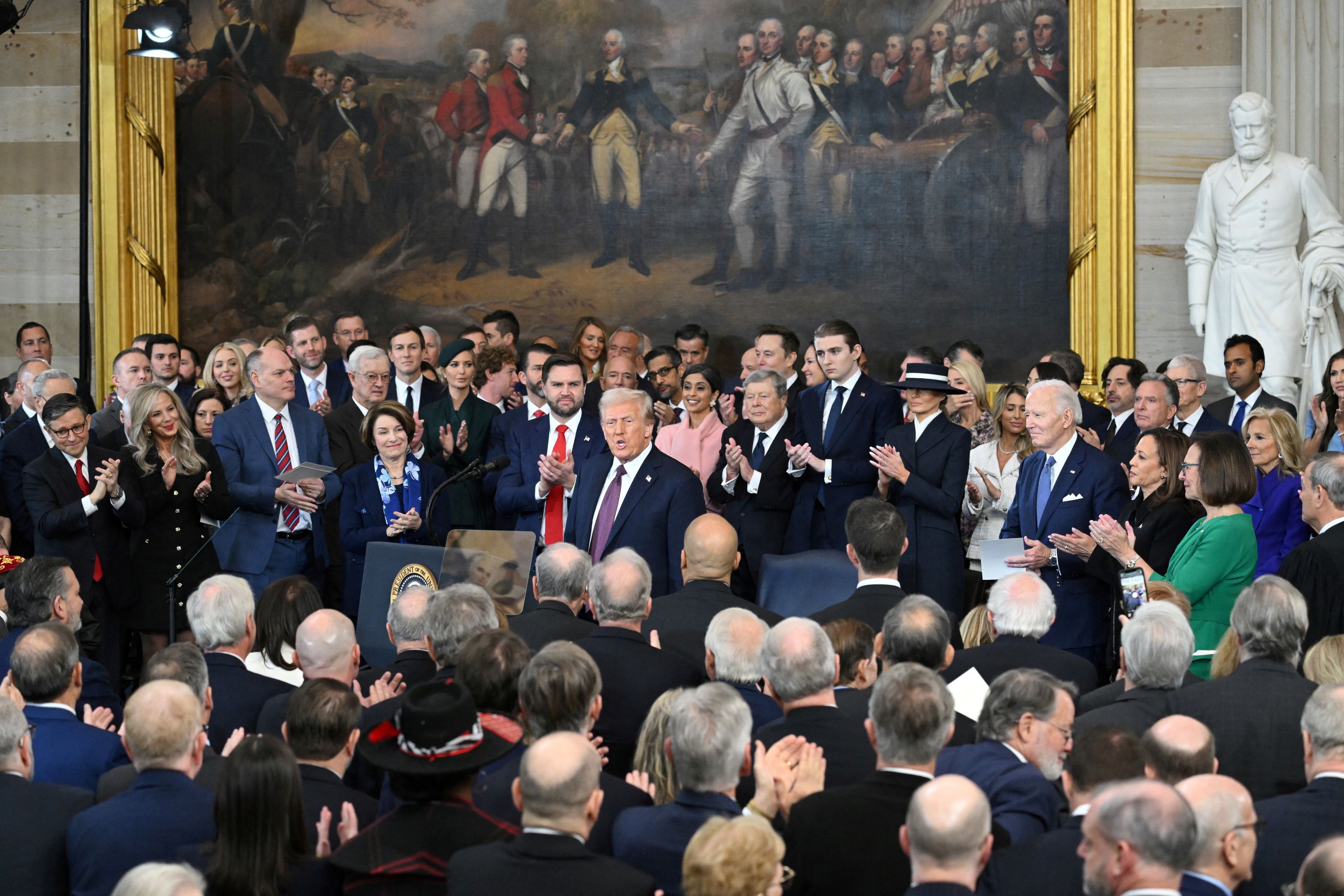 Στη λαμπερή τελετή στο Καπιτώλιο το παρών έδωσε πλήθος κόσμου, από παγκόσμιους ηγέτες, επιφανείς μεγιστάνες, υποστηρικτές του Ρεπουμπλικανού προέδρου, καθώς και πολιτικοί. Μεταξύ αυτών ήταν και ο πρώην πρόεδρος, Τζο Μπάιντεν, αλλά και η πολιτική αντίπαλος του Ντόναλντ Τραμπ, Κάμαλα Χάρις.