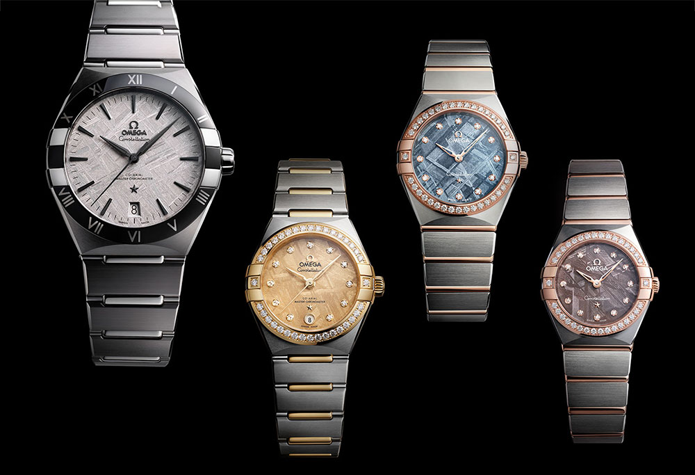 Οι δύο χρονογράφοι Speedmaster Moonphase Meteorite έκαναν το ντεμπούτο τους τις πρώτες ημέρες του 2025, συγκεκριμένα στις 14 Ιανουαρίου, εγκαινιάζοντας με εντυπωσιακό τρόπο τη νέα χρονιά. Αυτή όμως δεν είναι η πρώτη φορά που συναντούμε αυτό το εξωγήινο υλικό σε καντράν της Omega. Αξέχαστο το Speedmaster Grey Side of the Moon Meteorite του 2016 σε γκρι τόνους με λεπτομέρειες σε ροζ χρυσό. Είναι κατά τη γνώμη μου από τα ωραιότερα Speedmaster που υπάρχουν εκεί έξω. Την περασμένη χρονιά η ελβετική εταιρεία παρουσίασε μία ολόκληρη συλλογή Constellation Meteorite σε διαφορετικά μεγέθη κάσας (από 21 έως 41 χιλιοστά) και συνδυασμούς υλικών (ατσάλι, χρυσό ή ατσάλι με χρυσό), όλα με καντράν από μετεωρίτη σε διάφορα χρώματα, όπως λευκό, γκρι, χρυσαφί, γαλάζιο, μοβ, και πράσινο.
