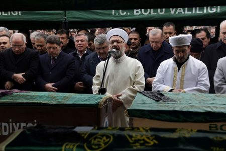 Ο πρόεδρος Ταγίπ Ερντογάν παρευρέθηκε στην κηδεία οκτώ μελών της οικογένειας πρώην βουλευτή του κυβερνώντος Κόμματος Δικαιοσύνης και Ανάπτυξης στο Μπόλου, σε απόσταση 35 χιλιομέτρων από το Καρτάλκαγια: η κόρη του Ζεχρά Σένα Γκιουλτεκίν και τουλάχιστον άλλα επτά μέλη της οικογένειάς της χάθηκαν στις φλόγες, ανάμεσά τους ο σύζυγός της, τα τέσσερα παιδιά της, ο γαμπρός της και η νύφη της. Φωτογραφίες εμφανίζουν τον Ερντογάν να σκουπίζει τα δάκρυα από τα μάτια του με ένα λευκό μαντήλι, με το βλέμμα σκυθρωπό και το κεφάλι χαμηλωμένο.