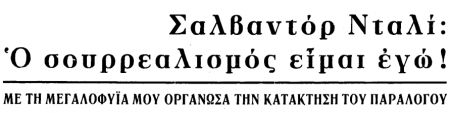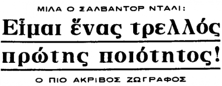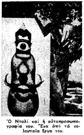 »Πρώτος ωμίλησεν ο Μπρετόν. Λακωνικά και με σαφήνεια εξήγησε τους λόγους της έκτακτης αυτής συγκεντρώσεως. Ο Νταλί τον άκουγε βγάζοντας κάθε τόσο περίεργους γρυλισμούς και μορφάζοντας. Εν τέλει, αφού τράβηξε το θερμόμετρο από το στόμα του και έβγαλε το ένα του παπούτσι, ξεδίπλωσε ένα πάκο χαρτιά και άρχισε να διαβάζη την απολογία του. Μια απολογία τόσον σουρρεαλιστικά γραμμένη, που παρ’ όλον ότι σουρρεαλισταί όλοι, δεν καταλαβαίναμε τίποτα, πλην του ότι ο Χίτλερ και ο χιτλερισμός πρέπει να μελετηθεούν υπό το πρίσμα των σουρρεαλιστικών φαινομένων και ότι οι χιτλερικοί διωγμοί παρουσιάζουν τεράστιον ενδιαφέρον για μελέτην.