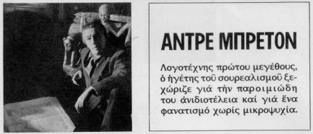 »Όλοι είχαμε μείνει άναυδοι, τρομαγμένοι και χωρίς δύναμιν αντιδράσεως εμπρός εις αυτόν τον χείμαρρον της εξαλλωσύνης. Ο ίδιος ο Μπρετόν τα είχε χαμένα και μην επιχειρώντας πια να αντικρούση τον ημιπαράφρονα συνομιλητή του, τον ικέτευε να αναθεωρήση τας απόψεις του. Τι να συνέβη τότε εις την ψυχή του περίεργου αυτού ανθρώπου; Εις ποιον συναίσθημα να υπήκουσε; Αγάπη προς τον Μπρετόν και τον σουρρεαλισμόν, φόβος να ζημιώση την σταδιοδρομίαν του ή απλός καμποτινισμός; Το γεγονός είναι ότι πετώντας και το έβδομο πουλόβερ του εγονάτισε εμπρός εις τον Μπρετόν και γυμνός ως τη μέση, ξυπόλητος, ανάμεσα σ’ ένα σωρό ρηγμένα πουλόβερ, του εζήτησε συγγνώμη».