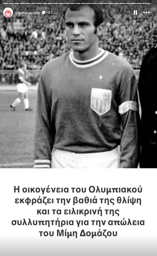 Η είδηση του θανάτου του Μίμη Δομάζου σκόρπισε θλίψη στο χώρο του αθλητισμού. Η τεράστια προσωπικότητά του και η μεγάλη αξία του είχαν αναγνωριστεί από όλους κάτι που αποτυπώνεται και στην ανακοίνωση που εξέδωσε η ΠΑΕ Ολυμπιακός.