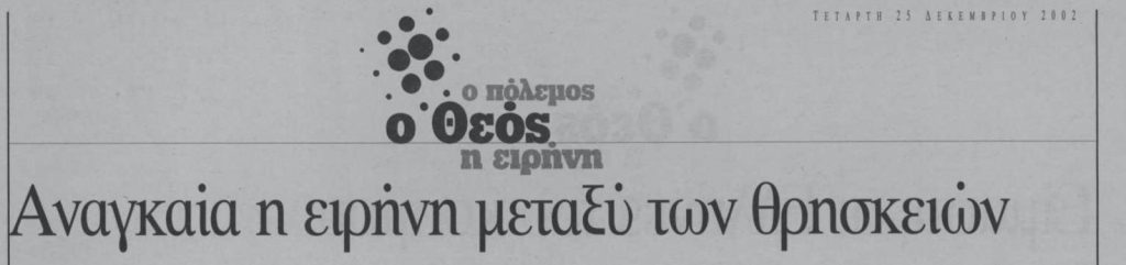 «ΤΟ ΒΗΜΑ», 25.12.2002, Ιστορικό Αρχείο «ΤΟ ΒΗΜΑ» | «ΤΑ ΝΕΑ»