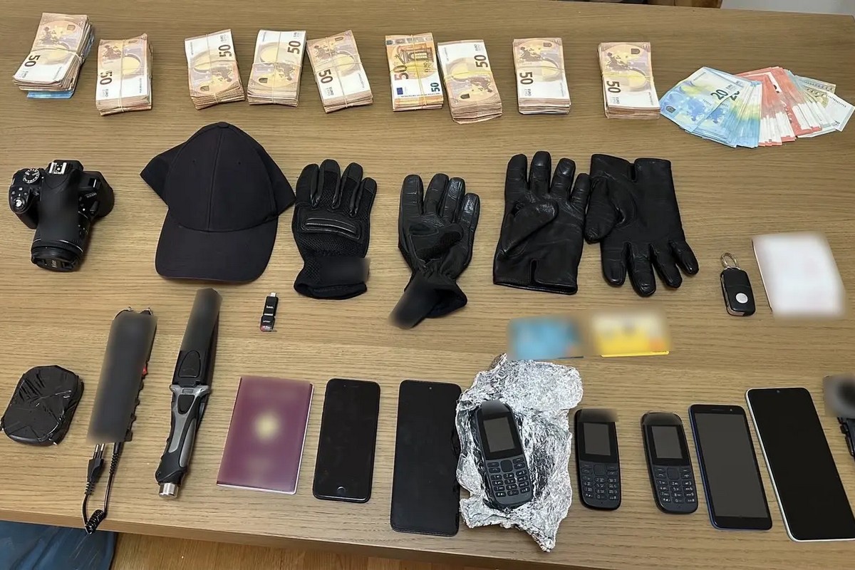 Οι κατηγορούμενοι συνελήφθησαν στα σπίτια τους στη Νέα Σμύρνη και το Περιστέρι όπου οι αστυνομικοί εντόπισαν, μεταξύ άλλων, ένα πυροβόλο όπλο, δύο τυφέκια Καλάζνικοφ, δύο αλεξίσφαιρα γιλέκα, σιγαστήρες, ναρκωτικά και 79.500 ευρώ.