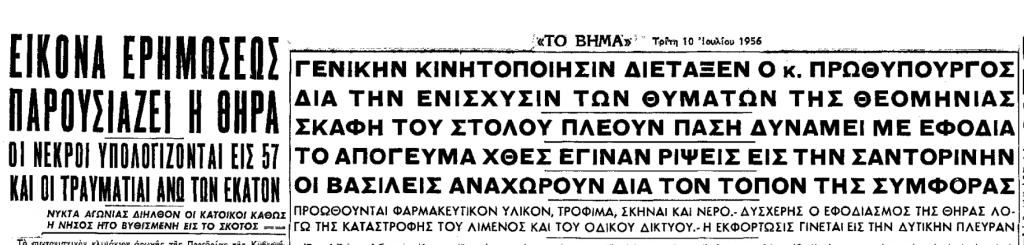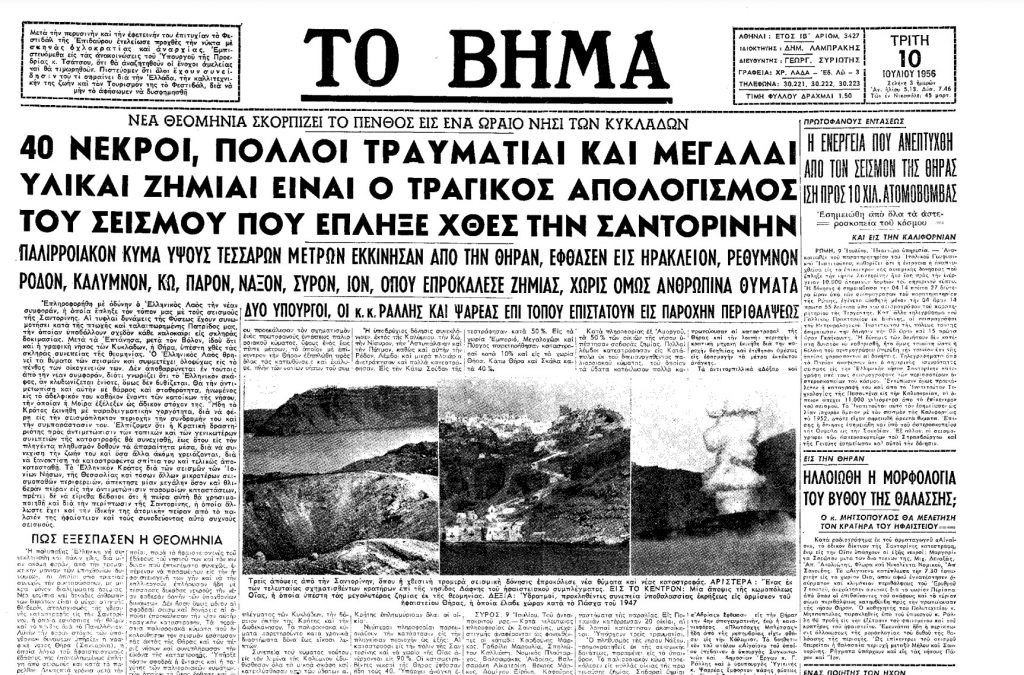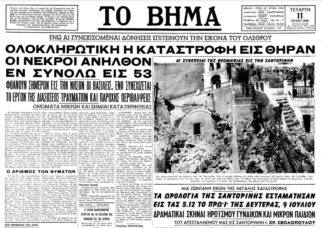 «ΤΟ ΒΗΜΑ» της 11ης Ιουλίου 1956 καταγράφει μαρτυρίες από τις τραγικές στιγμές του σεισμού.