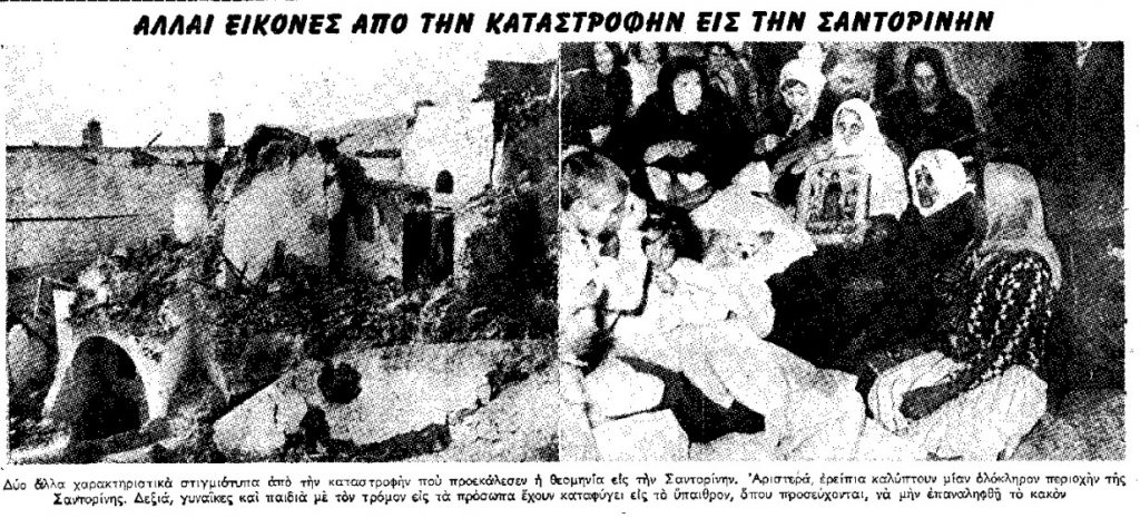 «Σκηναί φρίκης και πανικού διεδρατίσθησαν εις την τραγικήν Σαντορίνην ελάχιστα λετπά μετά την πρώτην σεισμικήν δόνησιν η οποία εσημειώθη εις τας 5.12’ πρωινήν.