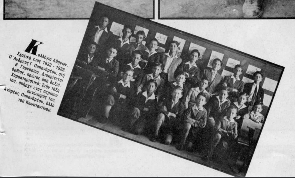 »O Ανδρέας συνεχίζει την πορεία των παιδιών της ηλικίας του. Κακός μαθητής στο Δημοτικό, μόλις φτάνει στην Ε’ τάξη, τον γράφουν στο Κολλέγιο Αθηνών. Τελειώνει την τάξη από τους τελευταίους.