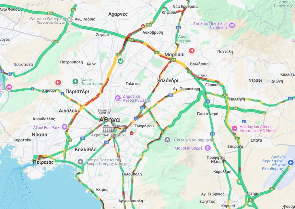 Δείτε εδώ ζωντανά την κίνηση στους δρόμους.