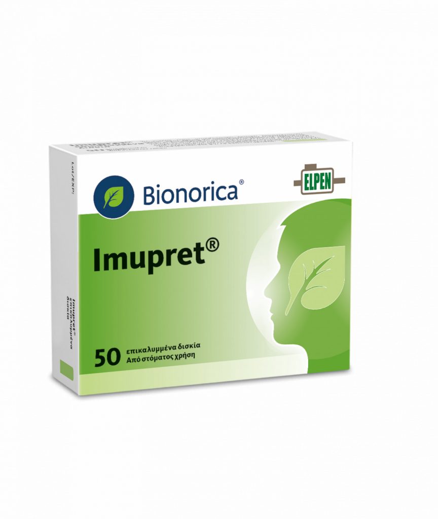 Χάρη στην αντιική και ανοσορυθμιστική του δράση, καταπολεμά ιούς, υπεύθυνους για το κοινό κρυολόγημα, αναστέλλοντας την αναπαραγωγή τους, ενώ βοηθά και το δικό μας ανοσοποιητικό σύστημα να τους καταπολεμήσει.Το Imupret® είναι κατάλληλο για ενήλικες και παιδιά από 6 ετών. Διατίθεται σε συσκευασία των 50 επικαλυμμένων δισκίων.