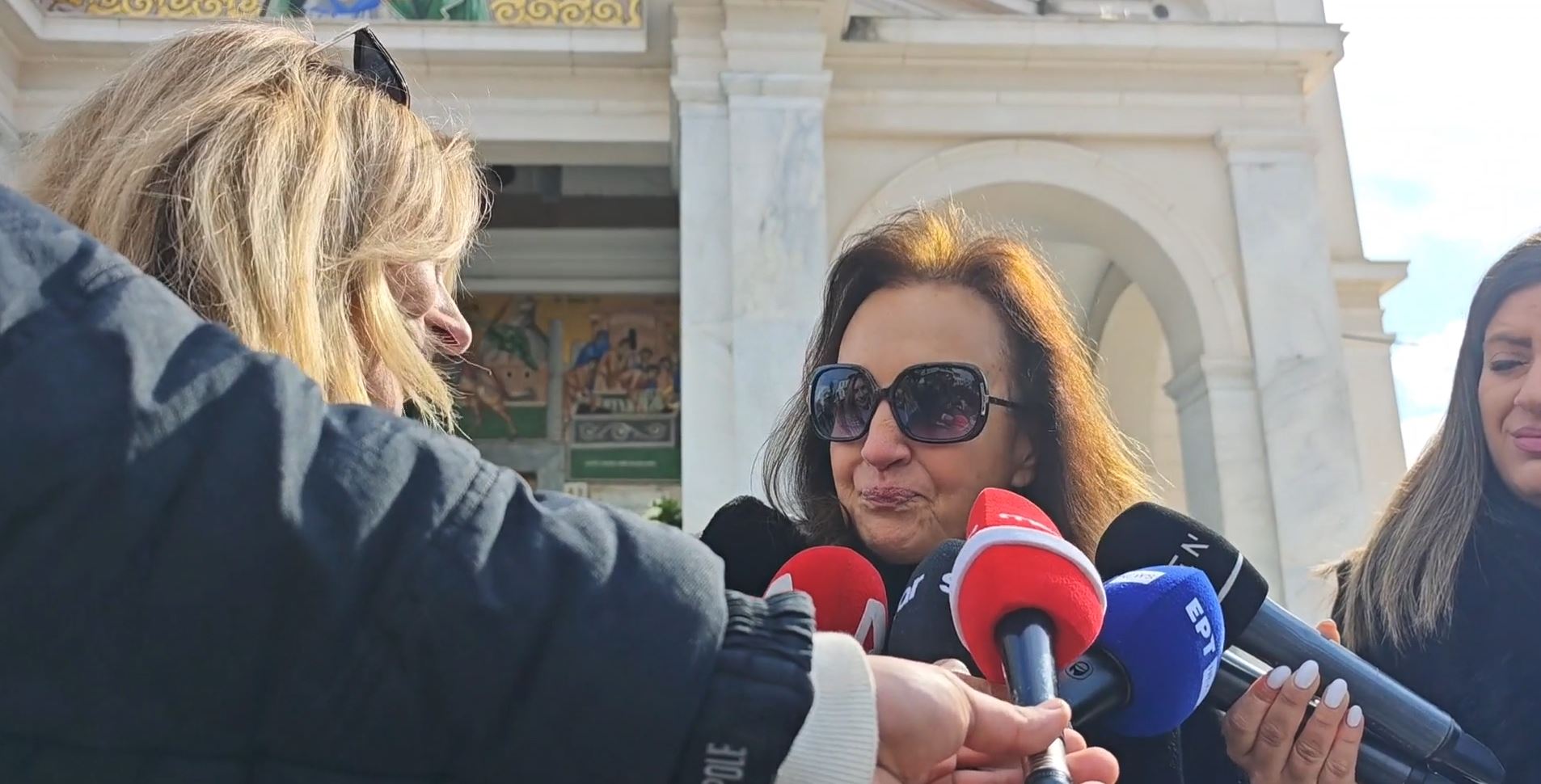 Τιμή στον Τάκη Οικονομόπουλο με την παρουσία τους στο ναό όπου πραγματοποιείται το λαϊκό προσκύνημα και θα πραγματοποιηθεί η κηδεία του, απέτισαν οι κόρες του Μίμη Δομάζου, Ευαγγελία και Ράνια Δομάζου.