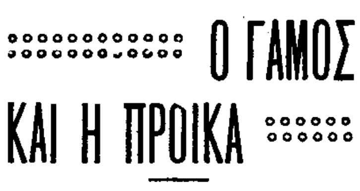 Το «ΕΛΕΥΘΕΡΟΝ ΒΗΜΑ», της 9ης Ιουλίου 1934, δημοσιεύει μια τραγική ιστορία αγάπης, που είχε όμως ως επίκεντρο όχι τον έρωτα, αλλά την προίκα.