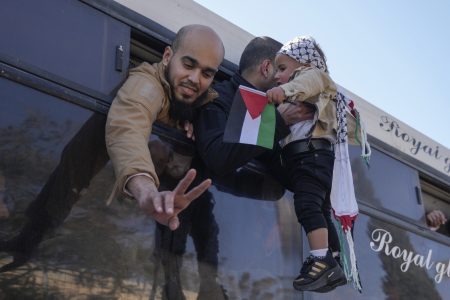 Στο μεταξύ και στο πλαίσιο της ανταλλαγής τριών ομήρων με 369 κρατούμενους , τηλεοπτικά δίκτυα μετέδωσαν εικόνες από το πρώτο λεωφορείο που μετέφερε απελευθερωθέντες Παλαιστίνιους φυλακισμένους και αναχώρησε από την ισραηλινή φυλακή Όφερ στην κατεχόμενη Δυτική Όχθη.