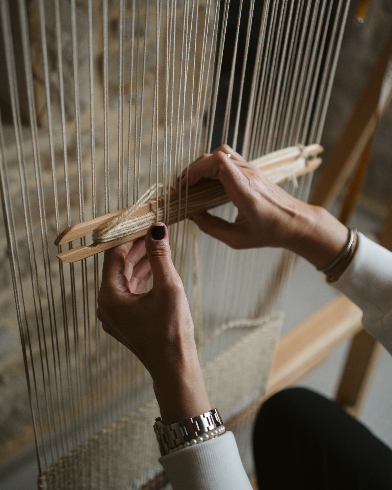 Τώρα έχω τέσσερις μεγάλους και τέσσερις μικρούς. Βρήκα μια κοπέλα που ήξερε να υφαίνει, είχε μάθει κι αυτή σε μοναστήρι όταν ήταν μικρή και έκτοτε δουλεύουμε μαζί. Έφτιαξα την ομάδα μου και κάπως έτσι ξεκίνησα να φτιάχνω το δικό μου ύφασμα.