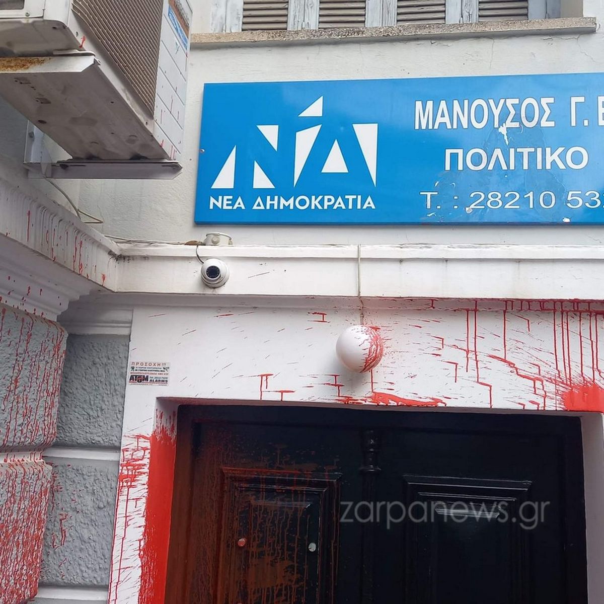 Μπογιές πέταξαν άγνωστοι στο γραφείο της βουλευτή της Νέας Δημοκρατίας στα Χανιά, Σέβης Βολουδάκη.
