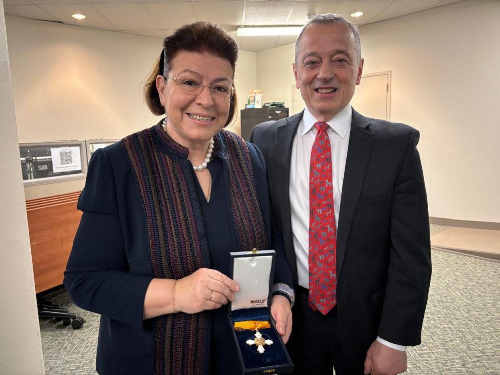 Η Λίνα Μενδώνη, κατά την απόδοση του «Ταξιάρχη του Τάγματος του Φοίνικα» στον Matthew Bogdanos