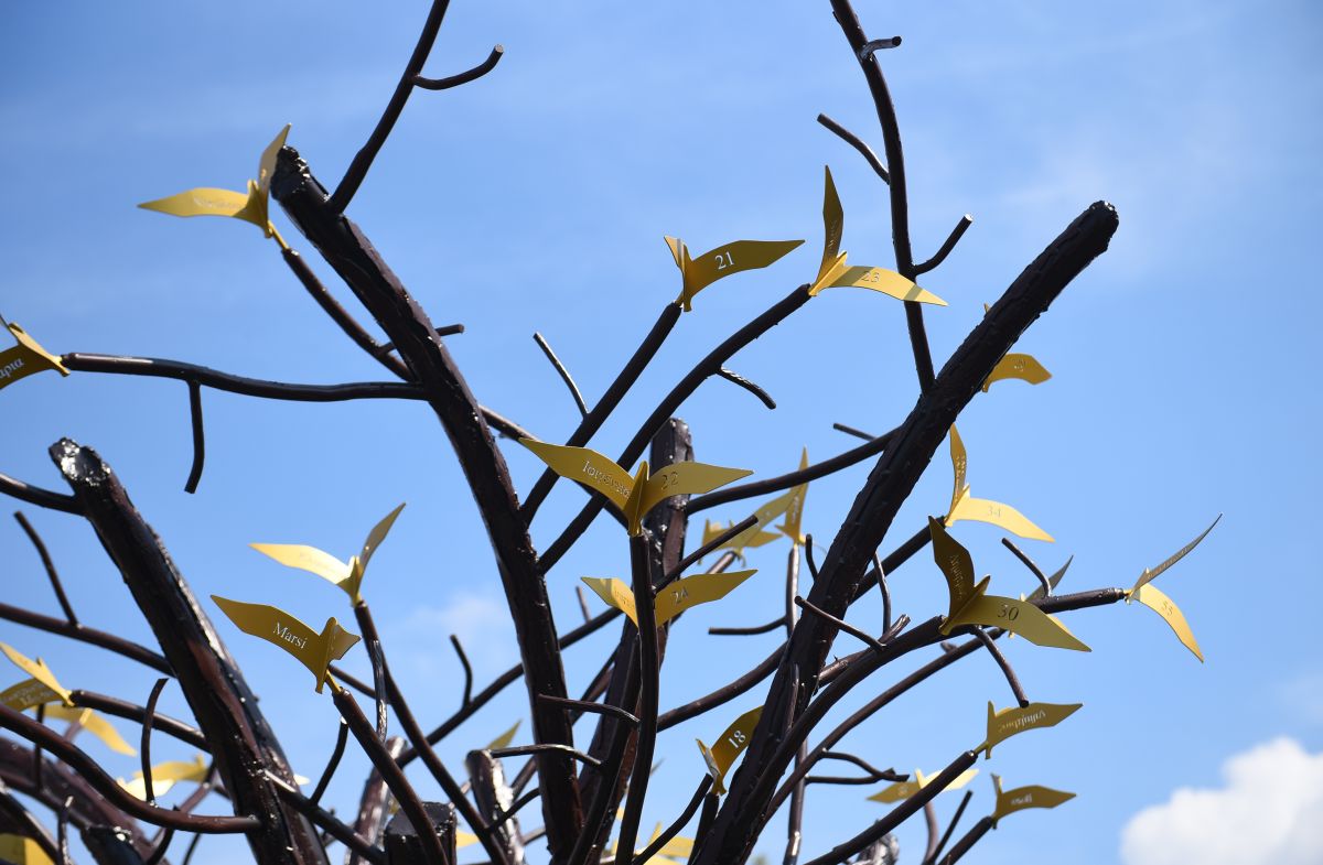 Πενήντα επτά ρίζες. 57 κλαδιά. Σε καθένα, ένα χρυσό πουλί. Στις φτερούγες τους, έχουν χαραχθεί ένα όνομα και ένας αριθμός. Ο αριθμός που προσδιορίζει την ηλικία των 57 ανθρώπων που τόσο αναπάντεχα, τόσο βίαια, άφησαν την τελευταία τους ανάσα στα Τέμπη εκείνο το μοιραίο βράδυ. Το βράδυ που έμελλε να τους ενώσει στο τέλος του σύντομου ταξιδιού της ζωής.